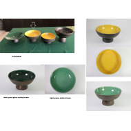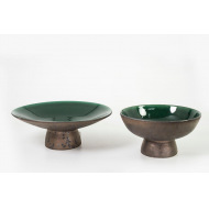 ARTISAN POTTERY BOWLS, CHINESE GREEN, BRONZE